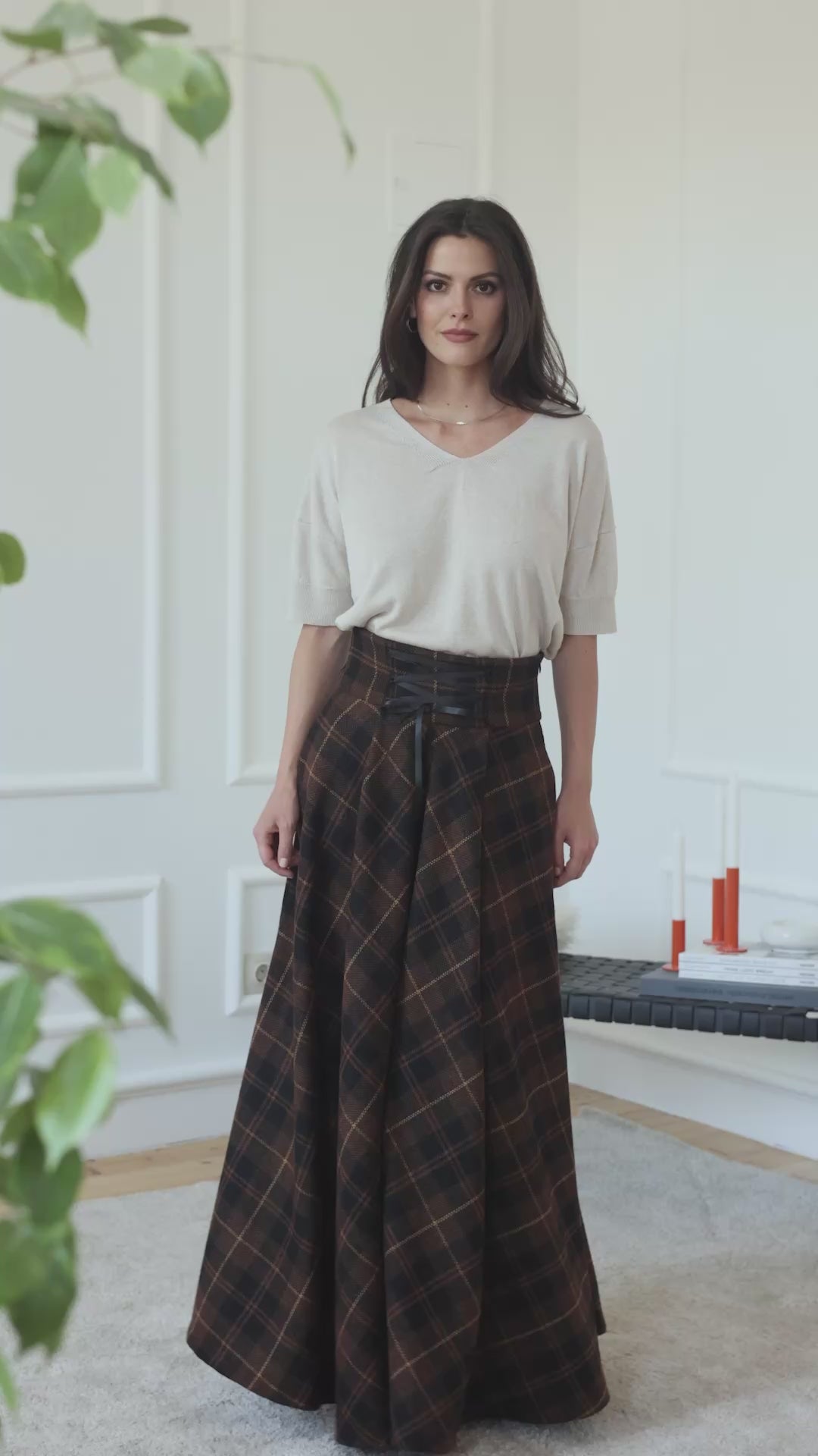 Add a touch of classic charm with a plaid skirt - a timeless print that pairs beautifully with both casual and formal tops. The wool midi skirt offers a sleek, polished look, while the flare midi skirt brings a playful, feminine twist with its flattering A-line shape. Crafted from soft, breathable wool, these skirts offer warmth without sacrificing style. Whether you're dressing up for work or going out for a cozy evening, our wool skirts are designed to elevate your look with timeless sophistication. Explore our collection today to find the perfect wool skirt to elevate your wardrobe this season.