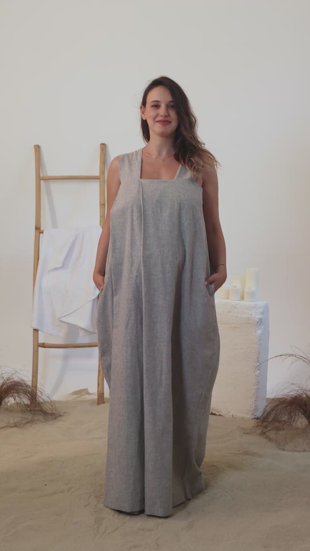 Linen Maternity Maxi Kaftan Dress with Wide Straps