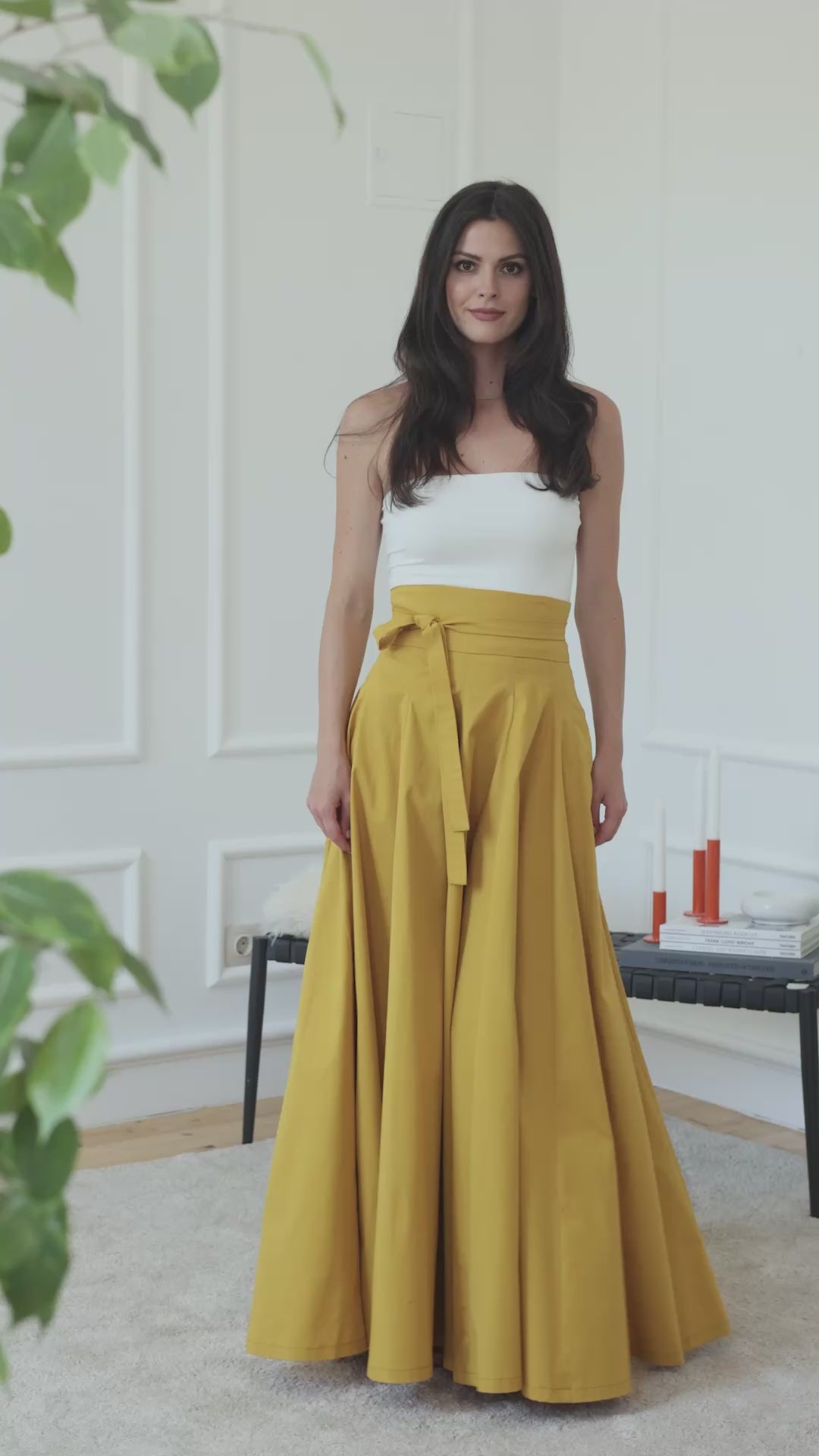 Maxi Floor Length A-Line Skirt with Ultra High Waist in Mustard Color